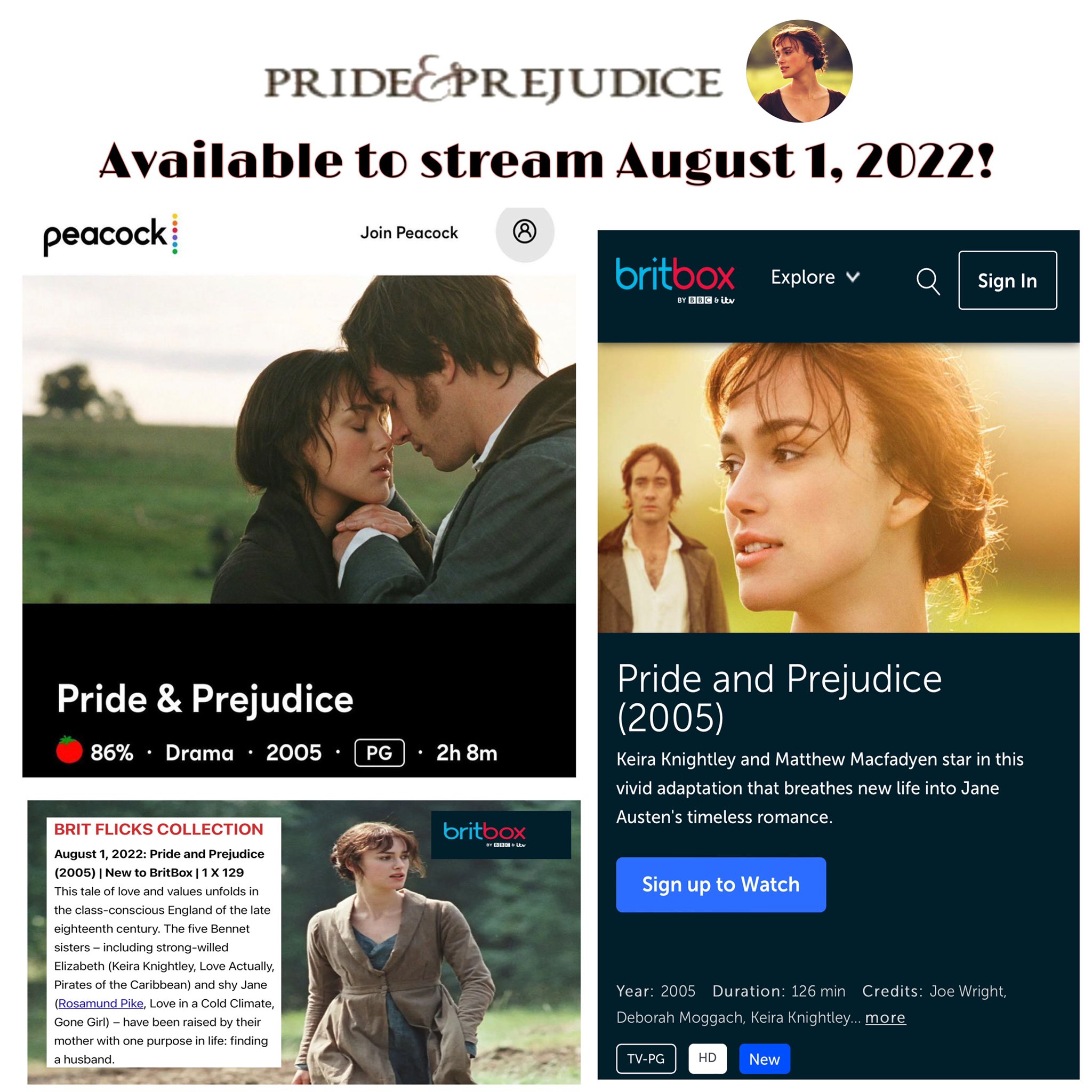 Pride Prejudice On Twitter Prideandprejudice2005 Film Is Back To Streaming Service Peacocktv Starting Today Also For The First Time It S Just Been Added To Britbox Streaming Service Starting Today